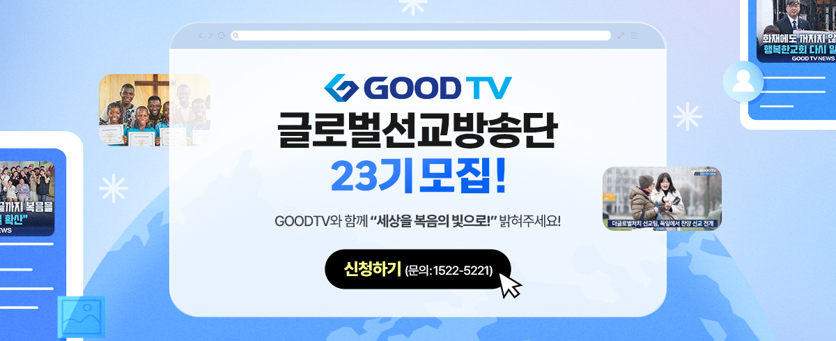 크리스천의 선한 사역을 찾아 GOODTV와 인터넷신문 데일리굿뉴스 주간종합신문 위클리굿뉴스를 통해 세상을 복음의 빛으로 밝힐 GOODTV 방송요원을 초빙합니다.